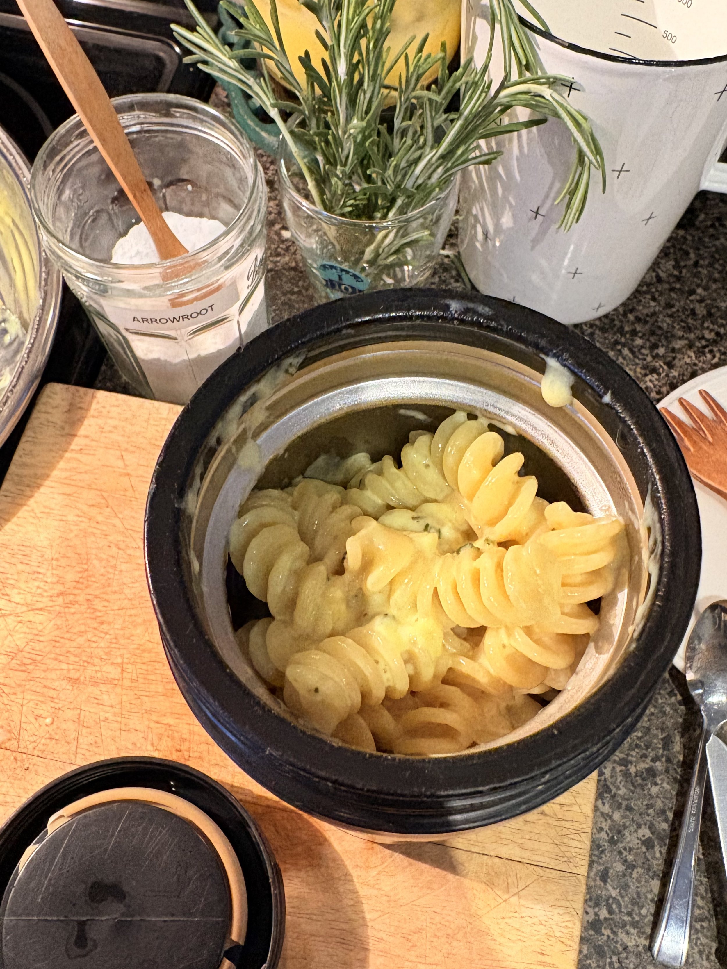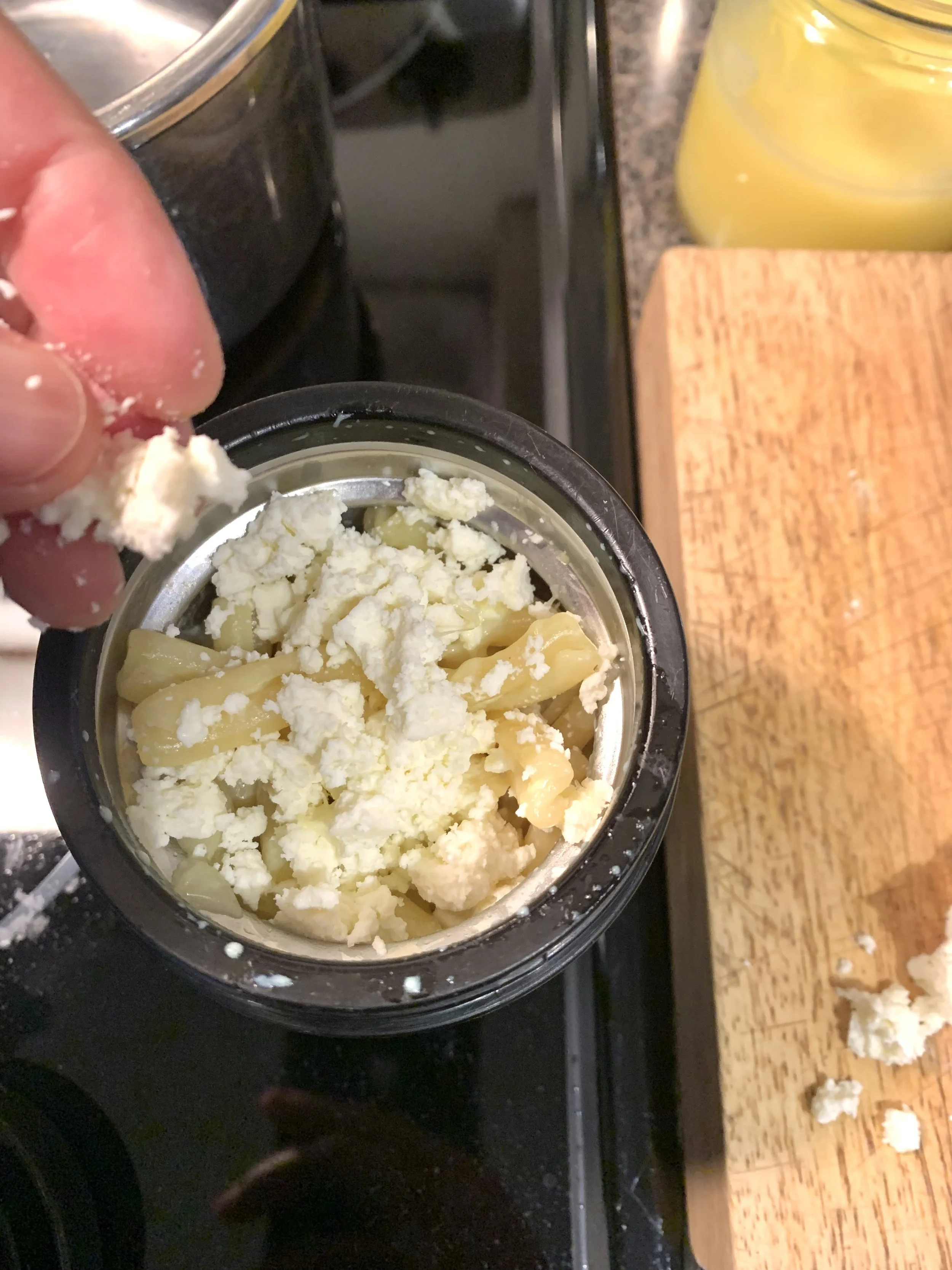 ☐ When making pasta, pour the hot pasta water into the thermos and close, and pour out when you’re ready to transfer the lunch into it.