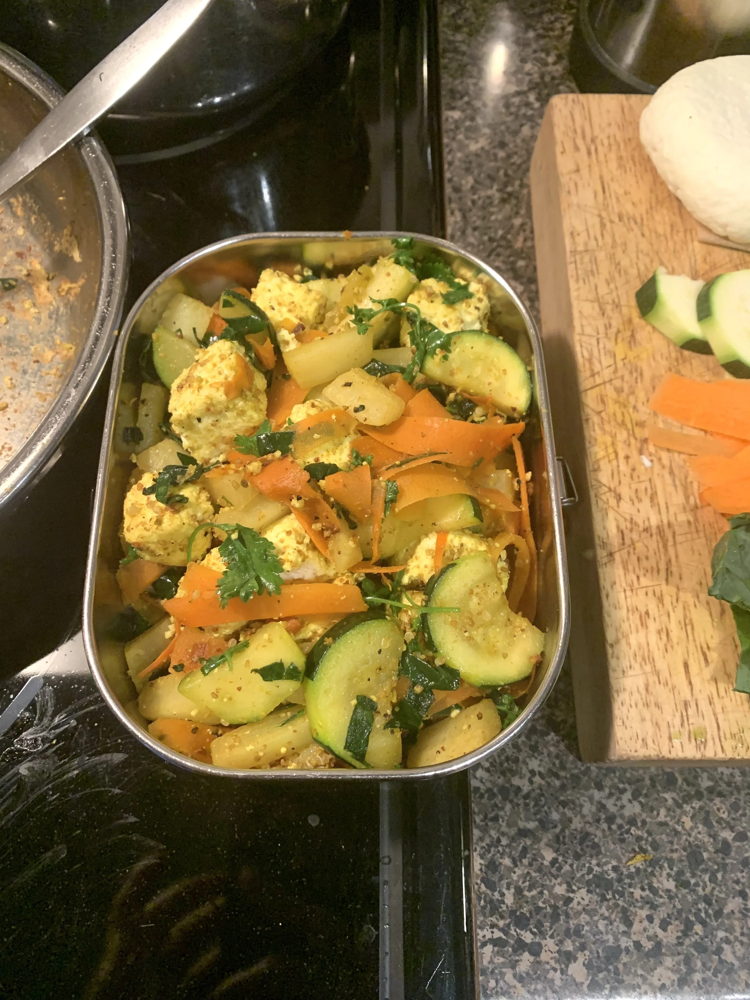 Prep time: 1 minute (paneer prepared the night before; grains soaked in water overnight; vegetables peeled, cut and prepared the night before)