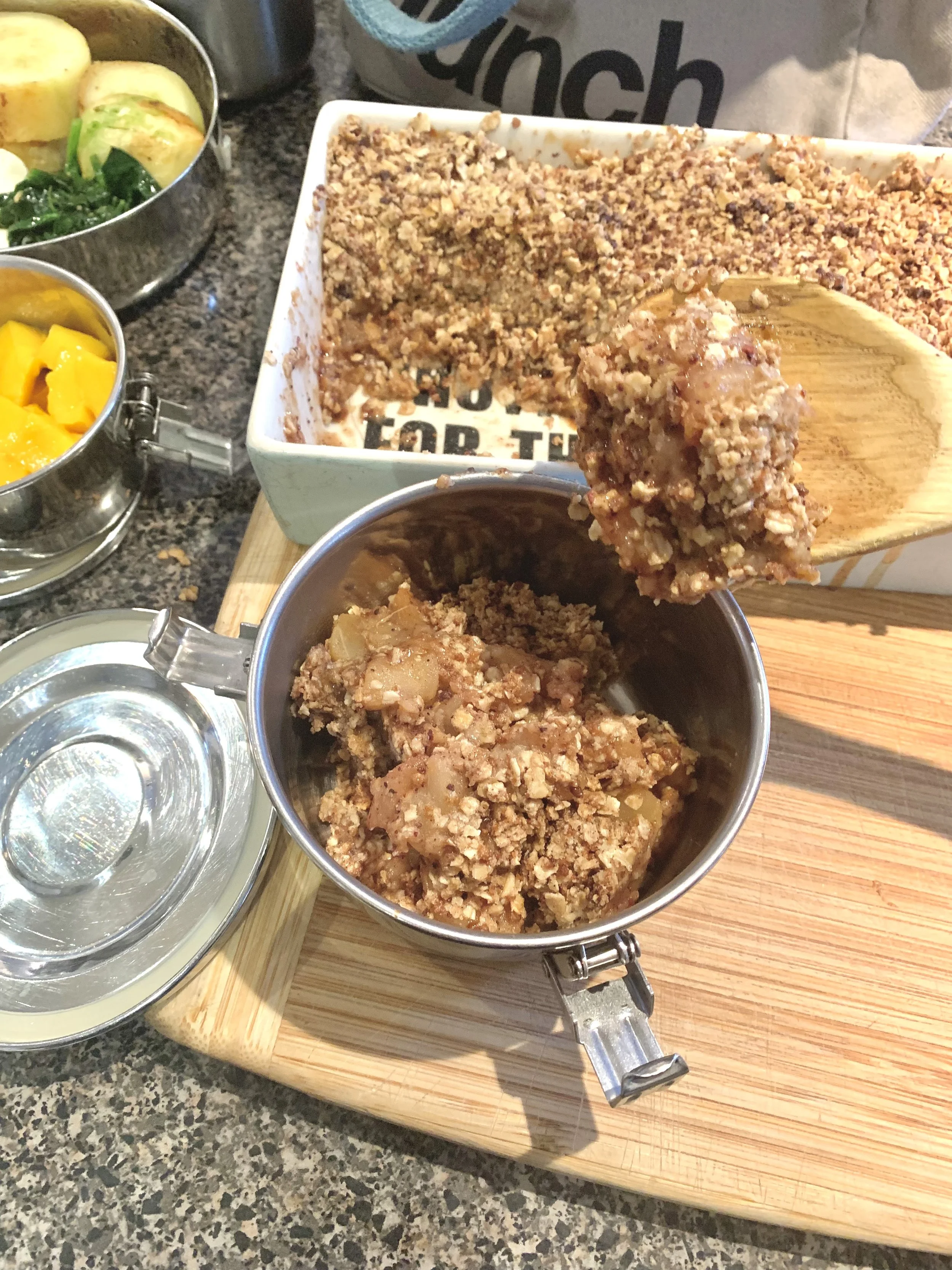 Apple crumble also makes for a warm, delicious school snack. I prep the topping the night before, cut the apples in the morning and bake it first thing, ready to pack in everyone’s lunch bag.