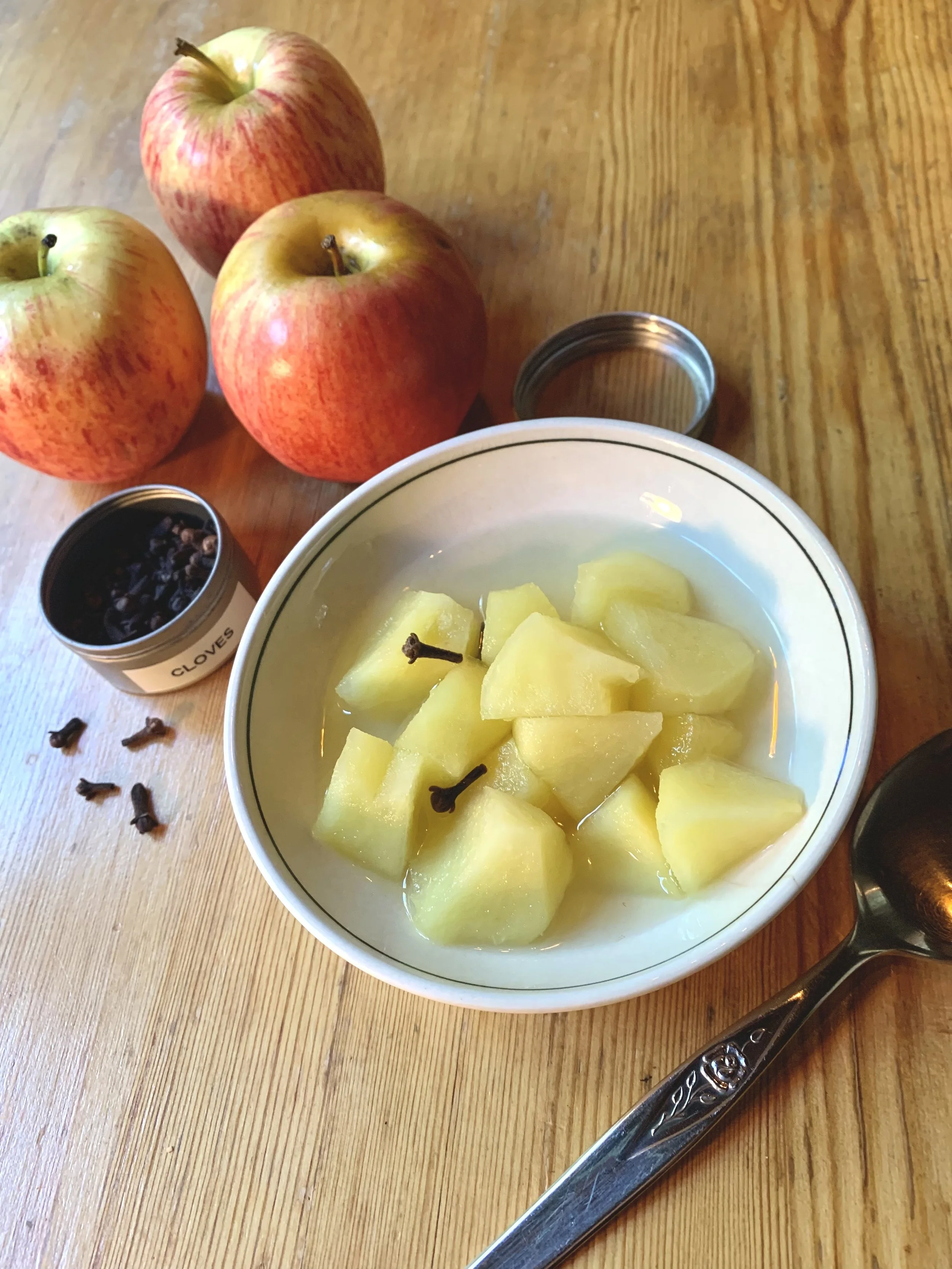 If cooking on the stove, boil the water and cloves in a small saucepan, add the apples, and allow to boil for a few minutes. Cover with a lid and turn down heat to low and cook further until soft all the way through, up to another 5-10 minutes, depending on the type of apple.
