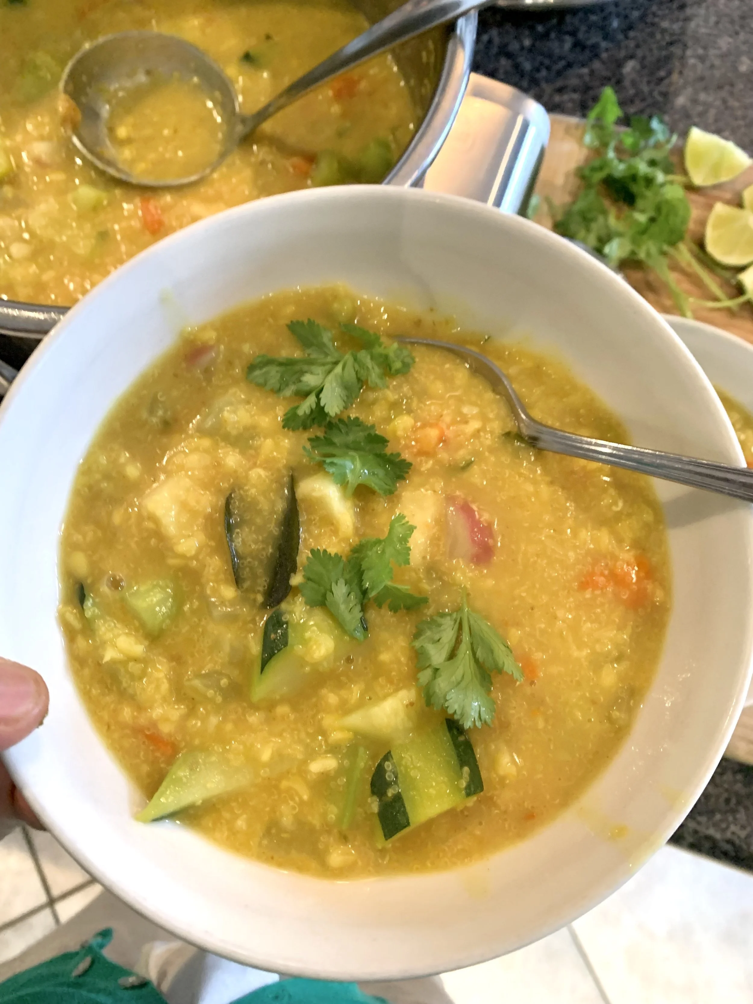 Serve warm. Garnish with cilantro leaves and a squeeze of fresh lime juice.